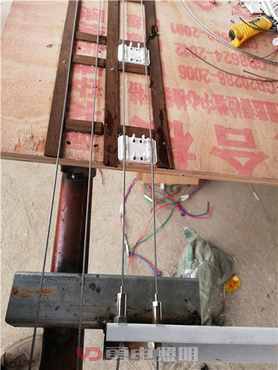 4、采用鋼絲繩安裝方式:對(duì)于有承重要求的項(xiàng)目上,不適合采用鋁合金軌道,所以選用了降低風(fēng)阻的鋼絲繩安裝。