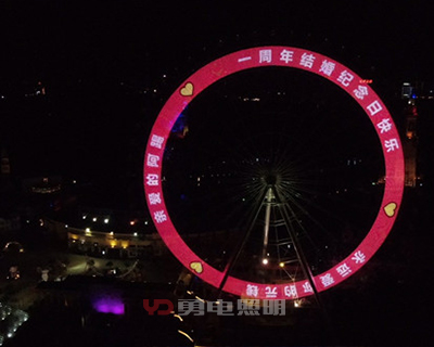 長沙世界之窗摩天輪的環(huán)形LED顯示屏,采用了勇電半定制二次封裝Φ20點(diǎn)光源燈串,燈串沿著環(huán)