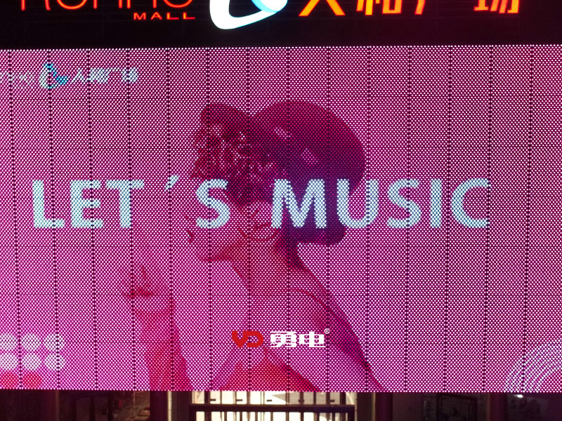 商場主入口采用勇電Φ40點光源打造了一塊面積達570平方米的大型戶外LED廣告屏,樓體周圍采用勇電Φ30點光源打造了12塊小型戶外LED廣告屏,整個戶外LED媒體立面總面積達到1110個平方。